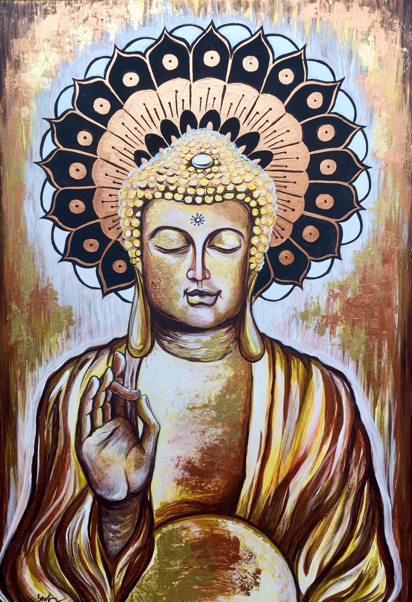 - Buddha-50x70cm, akril vásznon: Lelki béke elősegítéséhez
